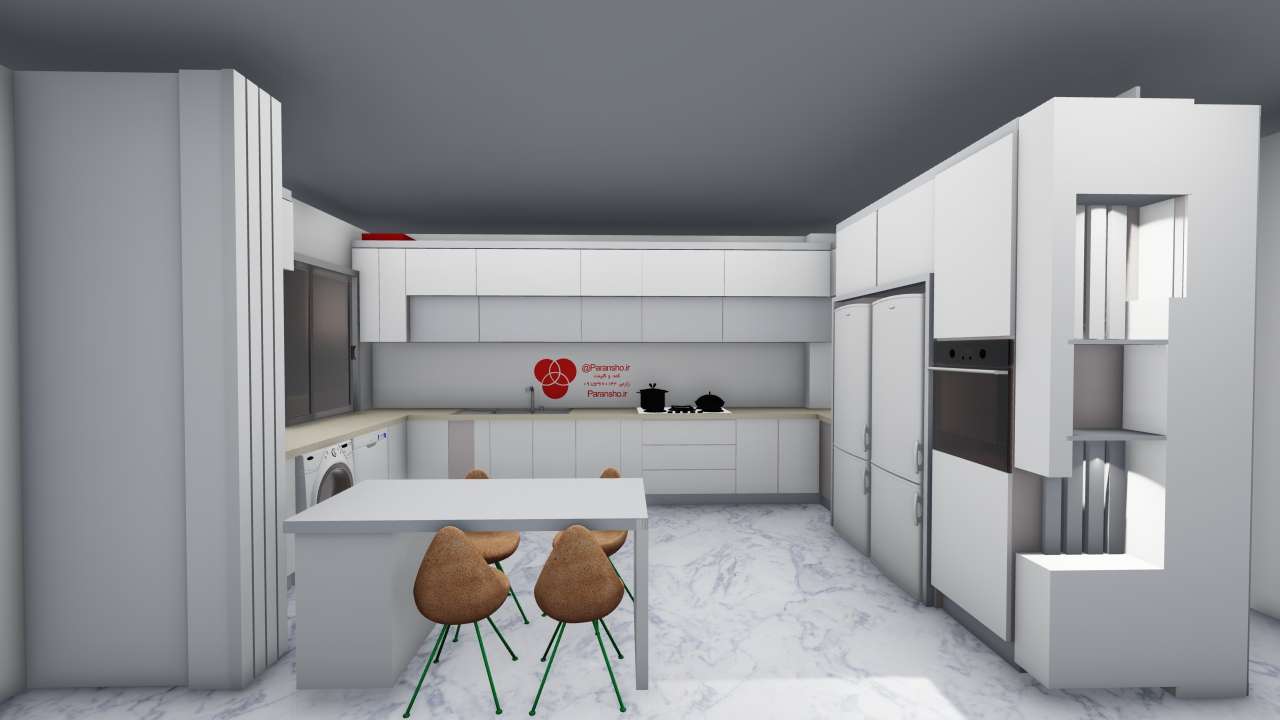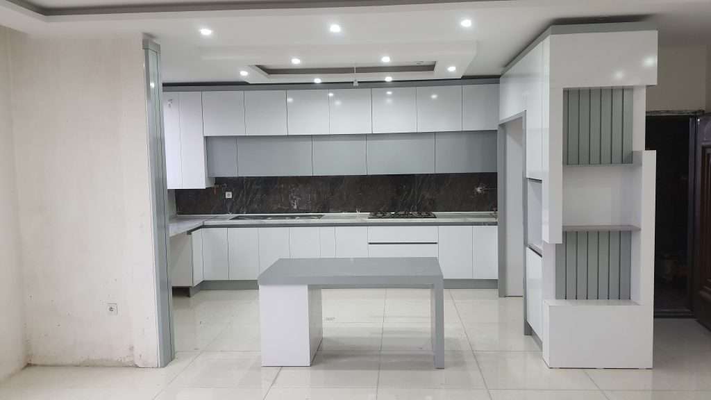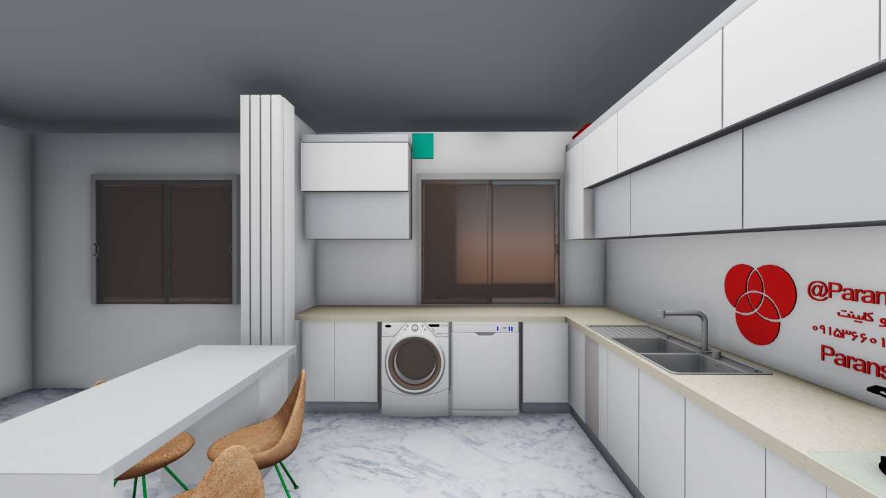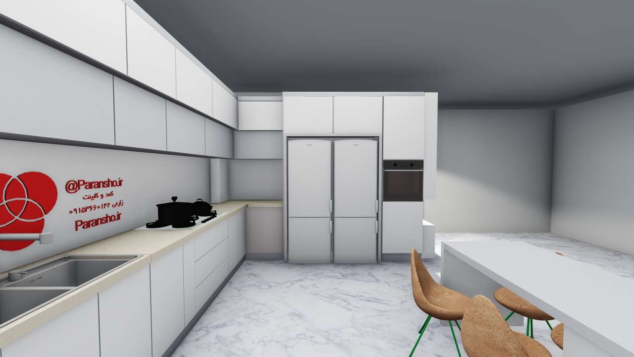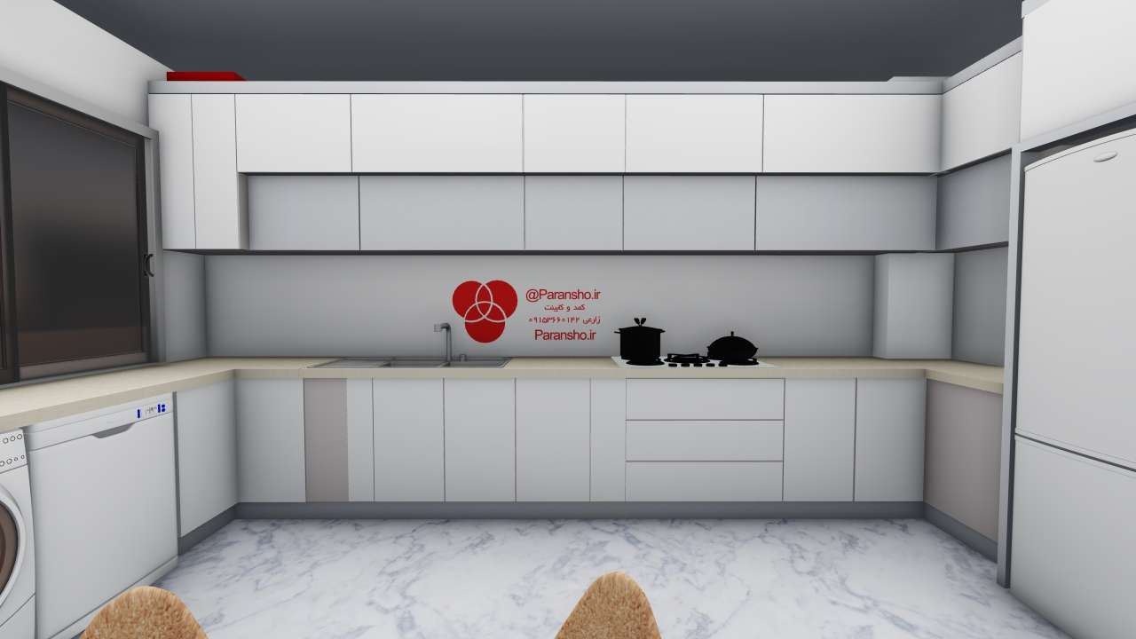 آشپزخانه طرح شکسته بدنه لترون پانیذ درب ها ام دی اف پاکچوب